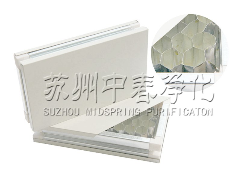 兩面采用鋼板,四周采用冷拉型才框架,內鋪鋁蜂窩芯材膠合成型。該產品表面平整、美觀、隔音、絕熱、保溫、抗震、防火性能好、幾何尺寸準確、安裝方便,省時省工。