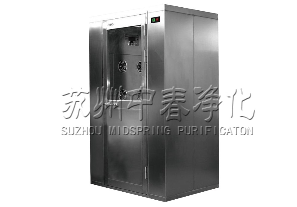 潔凈室內(nèi),在動態(tài)情況下,細菌及塵埃的較大發(fā)生源是操作者,當操作者進入潔凈室之前,必須用潔凈空氣吹淋其衣服表面附著的塵埃顆粒,并起到氣閘的作用,用戶可以根據(jù)廠房布置、工藝要求選擇不同的風淋室。