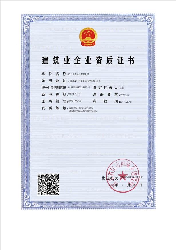 說明:建筑裝飾裝修專業(yè)承包貳級資質+消防設施工程專業(yè)承包貳級資質